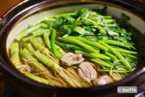 Sendai Seri Nabe is a hot pot dish that uses seri (Japanese parsley) in its entirety, including the roots. This dish allows you to savor the unique aroma and texture of seri.